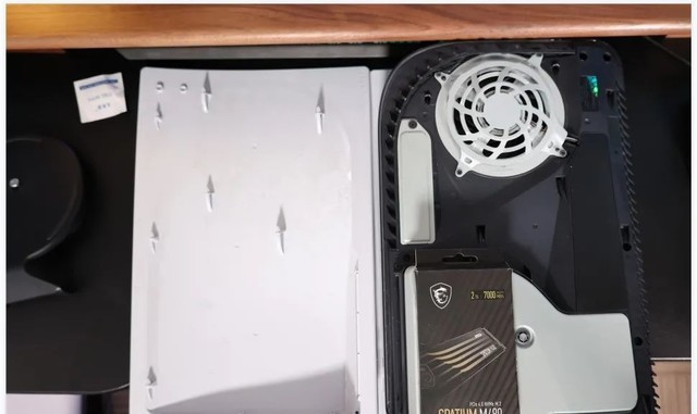 总的来说,为PS5游戏主机安装M.2SSD并不是很难。玩家需要先将PS5的底座拧下,再将光驱面的那一面朝上(如果是数字版的话,按照面对你的右边那一块盖板),然后在右上角的地方使力,再将盖板往下推拉,即可拆卸盖板。拿下盖板后,可以看到在风扇左边处就是M.2SSD硬盘安装位置了。