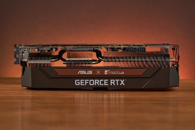 这张显卡即使在高GPU负载下,例如在游戏或基准测试期间,只要机箱内的环境温度不过高,风扇速度也将保持极低,让小伙伴们静享游戏体验!显卡还搭载了一款全新的GPU散热片,专为其先进的NF-A12x25风扇的性能特点而定制,为关注噪音的游戏玩家和Noctua爱好者提供了一款强力又独特的显卡,它可以
