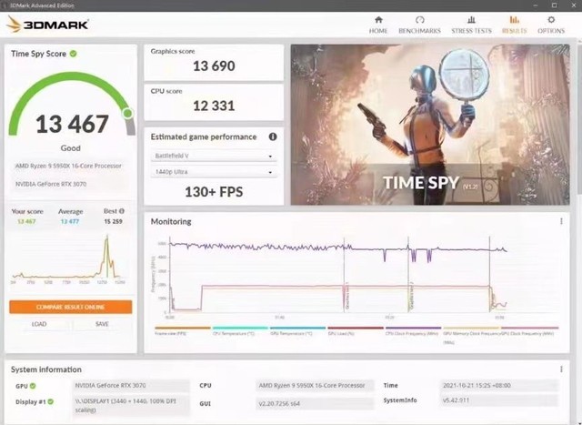 猫扇和华硕显卡强强联合,必将为大家呈现一张实力强劲的显卡!在3DMark测试中,华硕GeForceRTX 3070猫头鹰联名版显卡的测试分数达到13690分,分数优异,可见显卡的性能十分强劲。显卡采用NVIDIAAmpere架构,配备更快的第二代RTCore,更快的第三代TensorCore和多重流处理器,采用NVIDIAAmpere架构的RTX30系列每瓦性能比上一代产品提高1.9倍,可以轻松的在更高的分辨率下提供更出色的视觉体验~