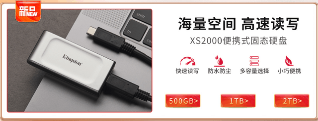 颠覆性的金士顿XS2000移动固态硬盘的体积只有69.54x 32.58 x 13.5mm,重量更只有28.9g,便携性丝毫不输闪存盘,搭配可移除的橡胶保护套能达到IP55防水等级,防水、防尘、防震的品质可以从容应对苛刻的使用环境。在采用USB3.2 Gen2 x2标准接口后,其性能大幅提升,读写速度高达2000MB/s,大大超过现有闪存盘以及绝大多数固态硬盘,并且容量有500GB、1TB、2TB三种规格可选,充分满足各种个性化存储需求。