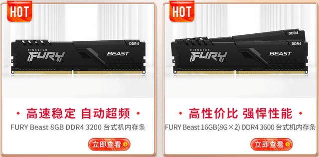 内存KingstonFURY野兽(Beast)DDR43200台式机内存8GB,作为高性价比的内存,野兽DDR4系列内存针对新款Intel和AMD芯片组进行优化,是经济实惠的高性能升级方案,并且新版本的散热器外观更加时尚酷炫,不仅便于安装,