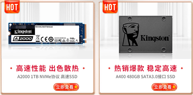 新装机用户若要选择固态硬盘、,必选金士顿A2000SSD固态硬盘,因为其可以用实惠的价格获得NVMePCIe高速性能,以及读写2200MB/s和2000MB/s的性能。如果是老机升级,那就要选金士顿A400SSD固态硬盘,虽然同是SATA接口,但是金士顿的A400SSD固态硬盘性能要比机械硬盘快数倍以上,10秒开机将成为现实,旧机焕发新生只需一块金士顿A400SSD固态硬盘。