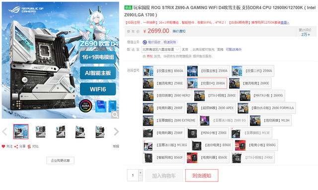 华硕Z690吹雪D4主板——颜值爆表售价2699元