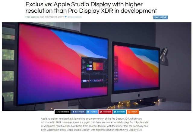 彭博社马克·古尔曼(Mark Gurman)最近报道称,苹果计划在2022年推出多款新Mac,以及一款新的外部显示器,其价格是针对普通用户的Pro Display XDR的一半。过去,苹果的"Cinema Display"系列有多种尺寸可供选择- 因此,如果该公司再次为其客户提供两种或更多种显示选项,那也就不足为奇了。
