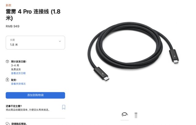 近日,苹果官网新上架了长1.8米的雷雳4 Pro连接线,售价949元,不起眼的连接线竟卖到近千元的价格遭到了不少网友的吐槽。