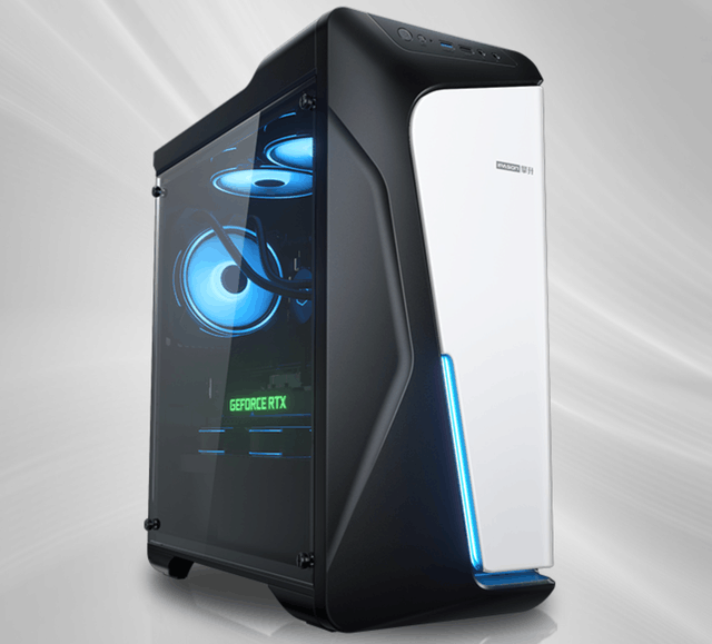 这款主机外观酷炫精致,使用定制水冷散热器,提供16GB内存和500GB固态,当然要注意主机默认不带风扇,有需求RGB灯效和其他风扇的用户联系客服加购。