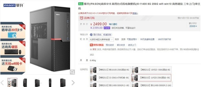 IPASON 攀升 商和S15 台式电脑主机(i5-11400、8GB、256GB)当前售价2499元,粉丝价2399元,11代i5加持,足以应对日常办公及娱乐需求,性价比非常不错,对性能需求不高的小伙伴儿可以买起来了。