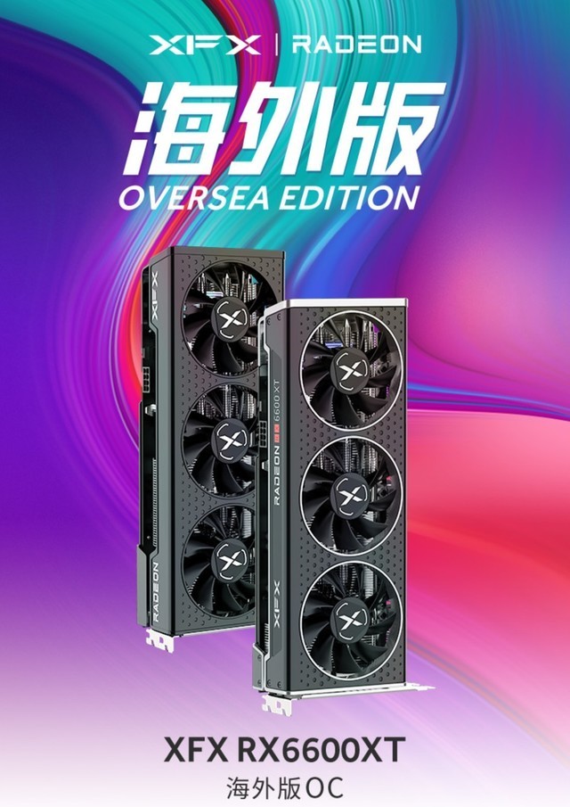 讯景XFX RX 6600 XT海外版V2提供了三风扇的大尺寸设计,散热效果看起来不错,主频也很高,算力表现应该非常受大家认可。