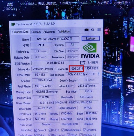 并且从设备ID【10DE 2414】来看,这的确和原本3060 Ti的【10DE 2486】不是同一款芯片。