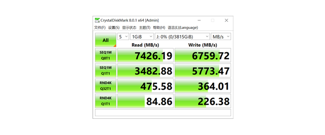 CrystalDiskMark²âÊÔÖУ¬ºê³žÂÓ¶áÕßGM7000¹Ì̬ӲÅ̵ijɼ¨Îª¶ÁÈ¡7426MB/s£¬Ð´Èë6759MB/s¡£Ïà½ÏTxBENCH£¬Ð´Èë³É¼¨ÂÔÓÐϽµ£¬µ«ÍêÈ«·ûºÏ¹Ù·½µÄ±ê×¢Öµ¡£