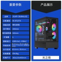一款性能与设计并重的游戏电脑主机箱,为你带来全新的体验。大水牛光之境黑色主机箱采用全景钢化玻璃,内部空间宽敞,支持M-ATX主板,并可容纳240水冷系统。垂直风道设计,让散热效果更佳。此外,产品还具有无立柱设计,安装方便且便于清理。如果你是游戏爱好者或专业设计师,那么这款主机箱将是你的理想选择。
