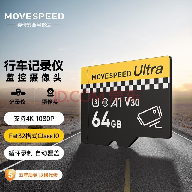 首推的是移速出品的64GB TF(MicroSD)存储卡,专门针对行车记录仪优化,可实现4K超清录像并具备高速读写特点,充分满足你对高画质视频的需求。另外,它还有防水、防尘、抗摔的设计,确保数据安全无虞。