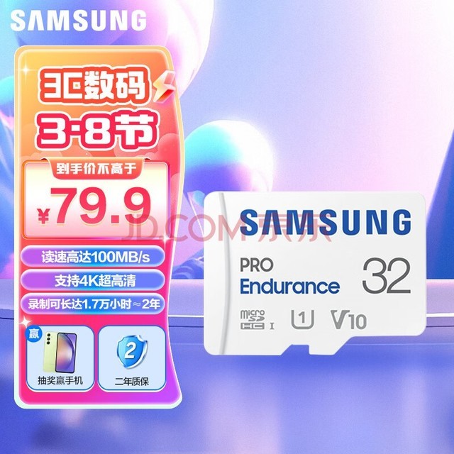 首先是三星公司专为监控摄像头打造的32GB MicroSD存储卡。此款存储卡搭载了三星自主研发的PRO Endurance技术,性能稳定可靠,可轻松应对高清晰度的4K视频录制任务。除此之外,它还配备有数据安全保护功能,有效地预防数据遗失及修改风险的发生。若您正寻求一款适用于行车记录器或是家居安保系统的高效型存储卡,不妨考虑一下这款三星产品。