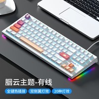 该键盘采用胭云主题配色方案,时尚且富有个性,搭配茶轴按键提供了舒适的触感与良好的回弹力。茶轴的特性在于其既有足够的力度又不会过于硬朗,确保长时间使用后的舒适度。此外,F3387采用有线供电方式,避免了电池续航的顾虑,并选用ABS材质制成键帽,在保证耐用性的同时也易于清洁维护。