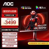 AOC爱攻AG275UXM 27英寸4K 165Hz显示器1152分区QD-MiniLED快速液晶HDR1000电竞屏幕1MS响应10Bit游戏 【上新】AGON5Pro王者/FastIPS电竞屏