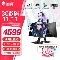 雷神(ThundeRobot)黑武士SE 27英寸硬件低蓝光 Fast IPS快速液晶 1ms响应 450nit峰值亮度 内置电源游戏显示器显示屏 2K/原生300HZ升降旋转ZQ27F300L