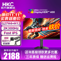 HKC27英寸2K原生300Hz超高刷FastIPS硬件低蓝光HDR400升降旋转IGZO技术电竞游戏显示器 猎鹰二代G27H4 猎鹰二代G27H4+彩灯机械臂H12