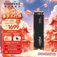 Crucial SSD固态硬盘m.2接口(NVMe协议 PCIe4.0美光出品 P3plus 4TB PCIE4.0)优惠力度之大让人难以置信,当前到手价仅为1689元,降价前售价为4659元,降幅高达64%,比上次爆料还要便宜。原价1699元,到手价1689元。