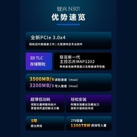 铨兴(QUANXING)1TB SSD固态硬盘 AI PC存储配件 TLC颗粒 M.2接口 2280(NVME协议)PCIe3.0 读速3500MB/s N301