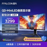雷鸟(FFALCON)Q8特别版 34英寸 180Hz 准4K带鱼屏显示器 Type-C 90W QD-MiniLED游戏办公电竞电脑显示器曲面屏 雷鸟Q8特别版/34英寸曲面/准4K180Hz