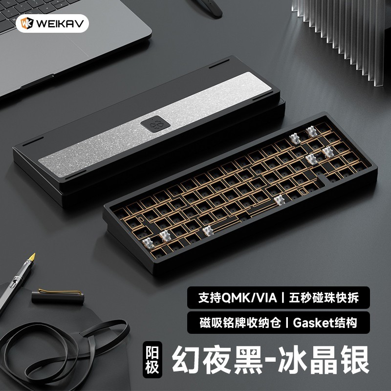 维咖 WEIKAV LUCKY65 V2机械键盘,三模连接设计,支持有线、蓝牙、2.4G无线多种方式,兼容多设备操作,让办公和游戏更加自由便捷。采用优质铝材质打造,外观精致大气,手感稳固扎实。客制化GASKET结构设计,带来更出色的震感与声音表现,搭配快拆功能,方便清洁与维护,是电脑办公与游戏娱乐的理想选择。