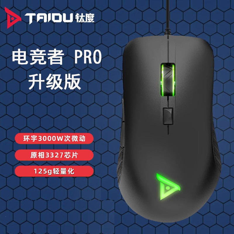 钛度 TSG301 Pro 电竞者有线鼠标,采用3327芯片,精准定位,极速响应,配备人体工学设计,左高右低符合掌心曲线弧度,搭配防侧滑裙设计,大幅提升操作稳定性,同时支持多种RGB幻彩呼吸灯调节,为玩家带来炫酷视觉体验。柔软线缆让移动更加顺滑,配合电竞专用微动和芯片,精准定位无延迟。