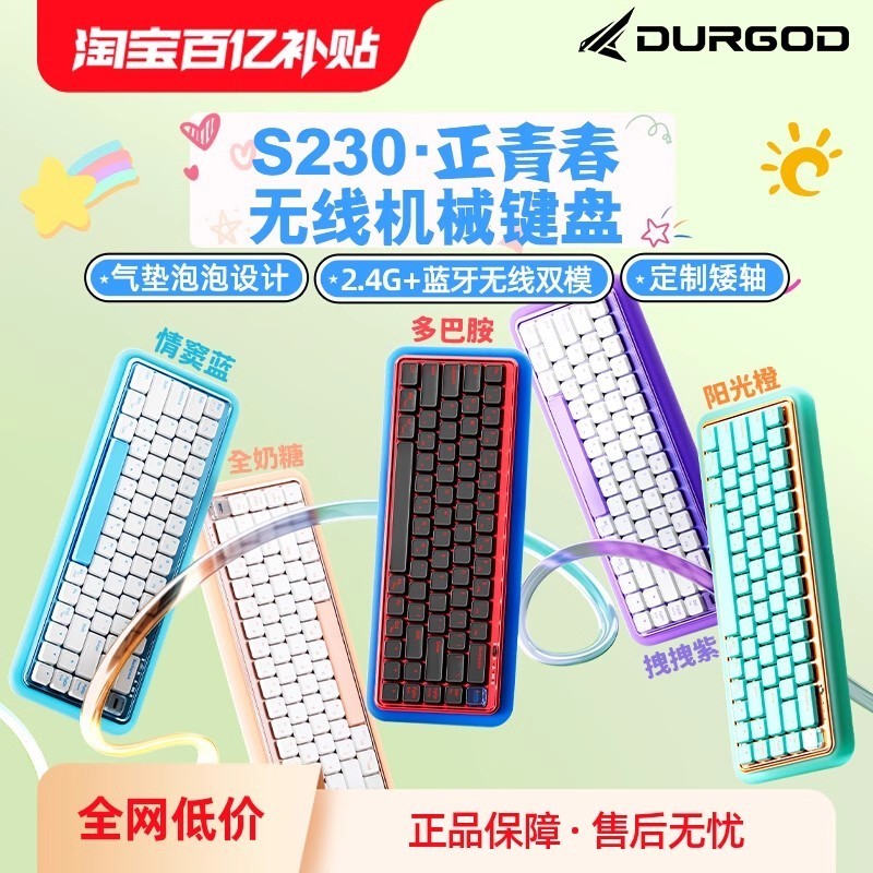 天猫百亿活动中,杜伽S230正青春气垫泡泡机械键盘优惠力度很大。原价239元,现在百亿补贴到手价仅需189元。