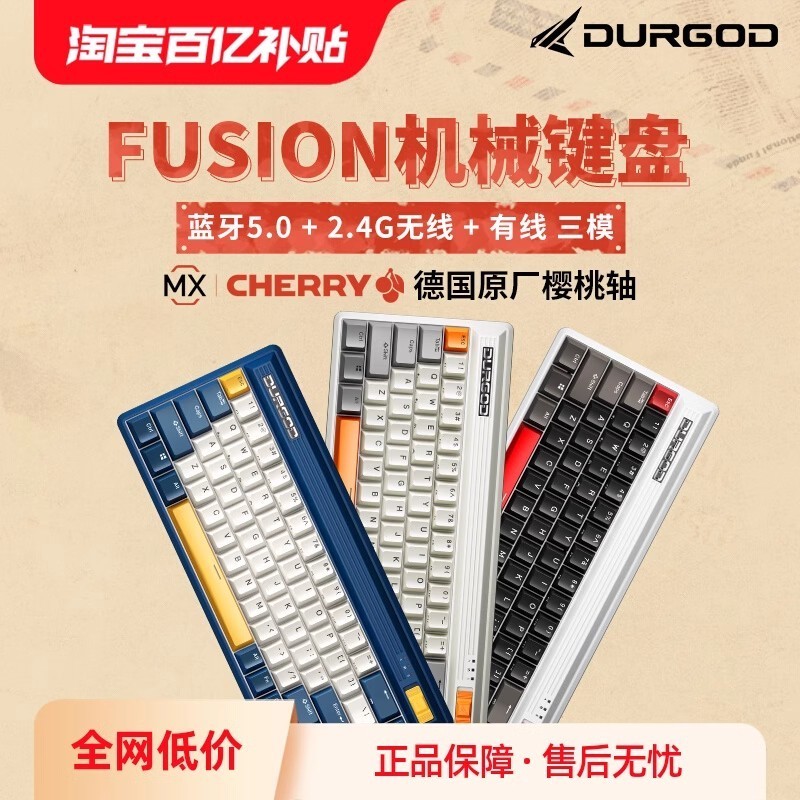 杜伽FUSION无线蓝牙2.4G三模机械复古键盘,一款专为电竞爱好者和办公用户设计的68键紧凑型键盘,现正参与天猫百亿补贴活动,到手价仅需369元起,直逼历史超低价!这款键盘支持USB、蓝牙和2.4GHz无线连接三种模式,提供航海蓝、蒸汽灰和复古白三种时尚配色,搭配CHERRY轴体的五种选择——樱桃青轴、樱桃茶轴、樱桃红轴、樱桃银轴和樱桃静音红轴,满足不同用户的个性化需求。其人体工程学设计配合无背光简约风格,在保证舒适手感的同时更省电耐用,同时多媒体功能按键让操作更加便捷高效。12个月保修期为品质保驾护航,三模切换随心所欲,是追求高效与个性用户的理想之选。