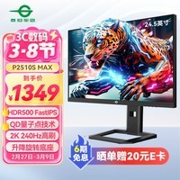 泰坦军团P2510S MAX电竞显示器,采用24.5英寸2K分辨率屏幕,刷新率高达240Hz,配备HDR500与QD量子点技术,带来更丰富的色彩表现和更流畅的游戏体验。