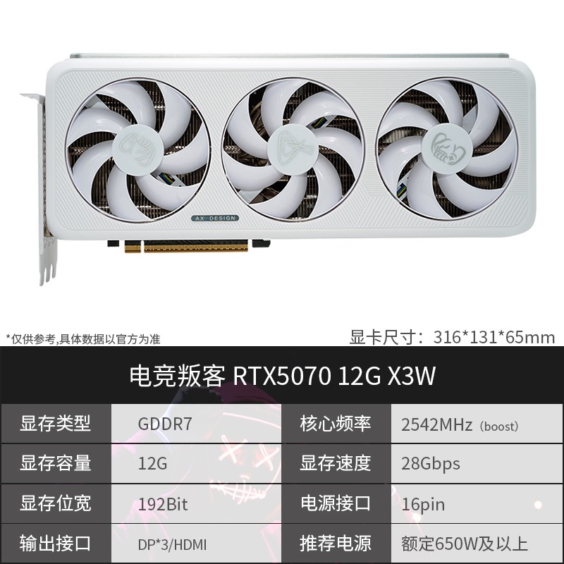 电竞叛客RTX5070/5070Ti/5080台式机电脑游戏独立显卡,是游戏玩家的得力助手。它能够为台式机提供强大的图形处理能力,无论是畅玩热门的大型3A游戏,还是进行高要求的图形设计工作等,都能轻松应对。