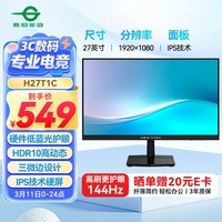 泰坦军团H27T1C显示器,27英寸IPS液晶屏,拥有144Hz高刷新率,无论是办公还是娱乐都能带来流畅体验。HDR技术搭配硬件级低蓝光,护眼同时呈现更真实色彩,长时间使用也不易疲劳。支持壁挂安装,方便节省空间,同时兼容外接笔记本电脑,满足多种设备连接需求。
