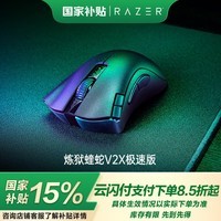 雷蛇炼狱蝰蛇V2 X极速版2.4G蓝牙HYPERSPEED双模无线鼠标,黑色款,原价279元。它有着众多吸引人的特性,采用与旗舰级游戏鼠标相同的高速RAZERIM HYPERSPEED WIRELESS无线技术,微动采用新的镀金触点,使用寿命长达约7千万次点击。传感器升级,DPI高达14000,能零跳动跟踪鼠标移动。还配置7个可编程按键、2个快速访问边缘按键和2个侧边按键,并且能将雷云3的配置文件存储在鼠标内存,没安装雷云3的系统也能自由切换配置。鼠标脚垫用高级100%PTFE材料,上盖和侧面是防滑磨砂材质,续航方面,内置混合式电池插槽,支持单节5号(AA)或7号(AAA)电池,HYPERSPEED无线连接至高约235小时续航,蓝牙连接至高约615小时续航。