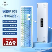 狼蛛(AULA)F108/F108pro客制化机械键盘有线/蓝牙/2.4G无线 三模连接108配列Gasket结构RGB灯效游戏办公键盘 F108冰川渐变-风灵轴