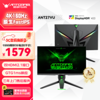 ANT27VU显示器搭载27英寸优质Fast IPS硬屏,分辨率达38402160,刷新率为160Hz,有着178゜广视角。它通过DispIayHDR400认证,峰值亮度最高可达450尼特。色域方面,支持100%sRGB、95%AdobeRGB、95%DCI - P3全域广色域覆盖,同时支持AMDFreeSync和NVIDIAG - Sync显示变频技术。其接口丰富,拥有两个HDMI2.1接口,连接PS5、XBOX等主机可实现4K120HZ的满血画质输出,还搭载DP1.4、15WType - C以及两个USB3.0接口,支持DSC显示流压缩技术,单根DP线可完成4K160Hz的无损传输。外观上棱角分明,背部有幻蚁之眼RGB氛围灯,还有蚂蚁图腾的LOGO灯和支架投影灯,可多模式自定义灯效调节。底座支架支持上下升降、高低俯仰、左右旋转、横竖调节,能让用户告别颈椎疲劳,全方位提高娱乐舒适度。它具备4K 144Hz、100%sRGB、HDR400等优势,功能多样,价格实惠,无论是游戏还是日常使用都很适合。