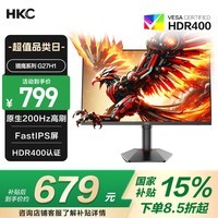 电竞爱好者看过来!HKC 猎鹰二代 G27H1 显示器,27英寸IPS面板,支持G-Sync与FreeSync技术,原生200Hz刷新率搭配1ms响应时间,带来丝滑流畅的游戏体验!同时,它拥有122%sRGB色域覆盖和HDR400认证,画面色彩细腻逼真,无论是游戏还是设计都能轻松驾驭。三面微边框设计、人体工学支架以及丰富的接口配置,满足你的多种需求。