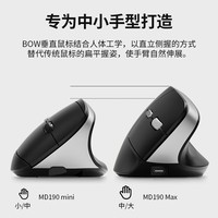 B.O.W MD190mini无线蓝牙双模办公鼠标是一款非常实用的鼠标。它采用中小手人体工程学设计,垂直的造型能让使用者的手部在操作时更加舒适。这款鼠标通用性很强,无论是平板、笔记本还是台式电脑都可以使用,颜色为灰黑色。