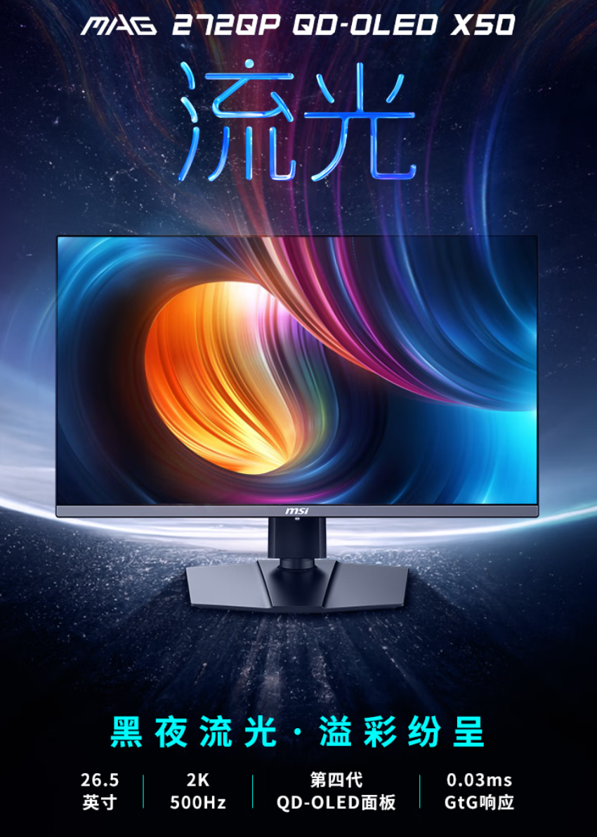 本文属于原创文章,如若转载,请注明来源:微星MAG 272QP QD-OLED X50流光发布:500Hz超高刷 首发百元福利https://diy.zol.com.cn/983/9834843.html