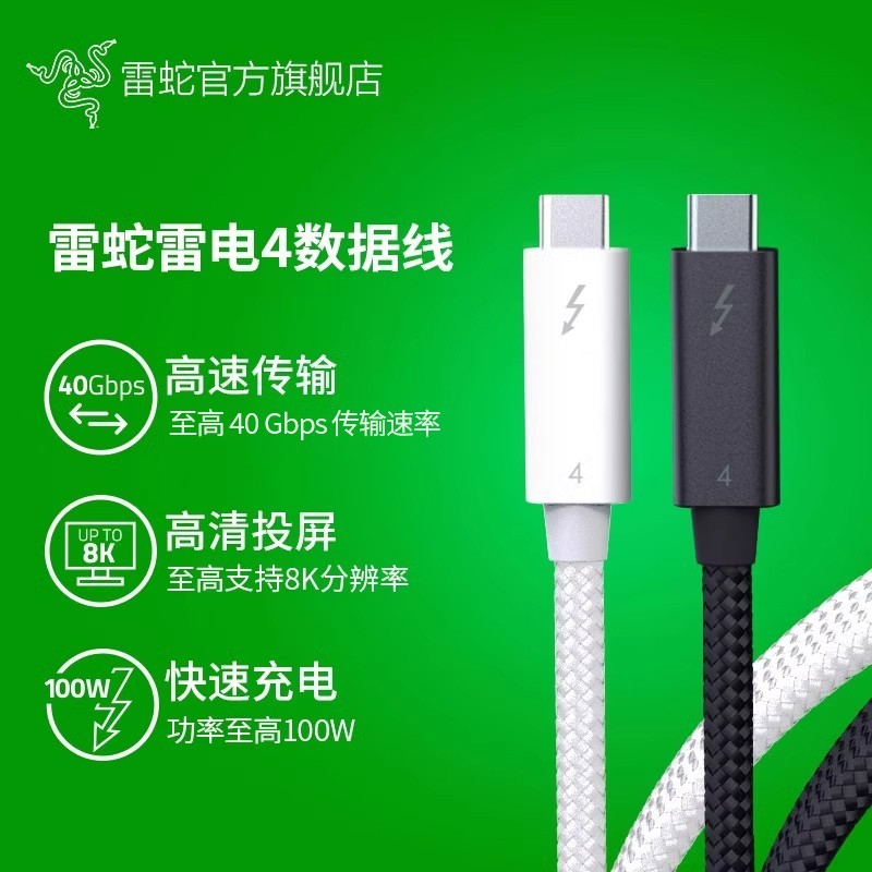 雷蛇双Type-C 100W数据线,拥有至高40Gbps传输速率,支持最高8K分辨率显示器,具备PD 100W大功率供电能力,向下兼容雷电3协议,满足高性能设备的连接需求。线身采用精密尼龙编织设计,结实耐用且不易打结,方便日常收纳。
